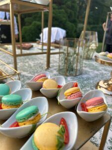 Consigliamo di bilanciare anche le proposte di primi piatti tra terra e mare, riso e pasta. Un secondo di carne semplice, ma cucinato con cura e per finire un buffet di dolci esposivo!