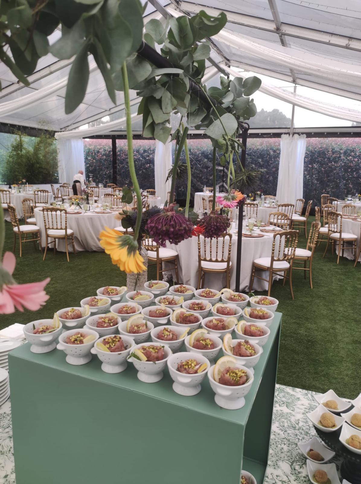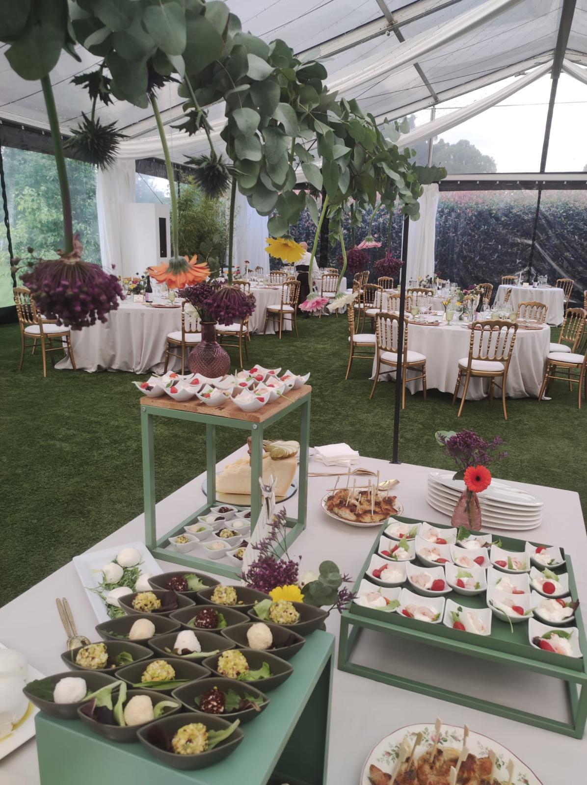 I fiori sulle strutture dei buffet sono in completa armonia con gli allestimenti ed il cibo… proprio come piace a noi.