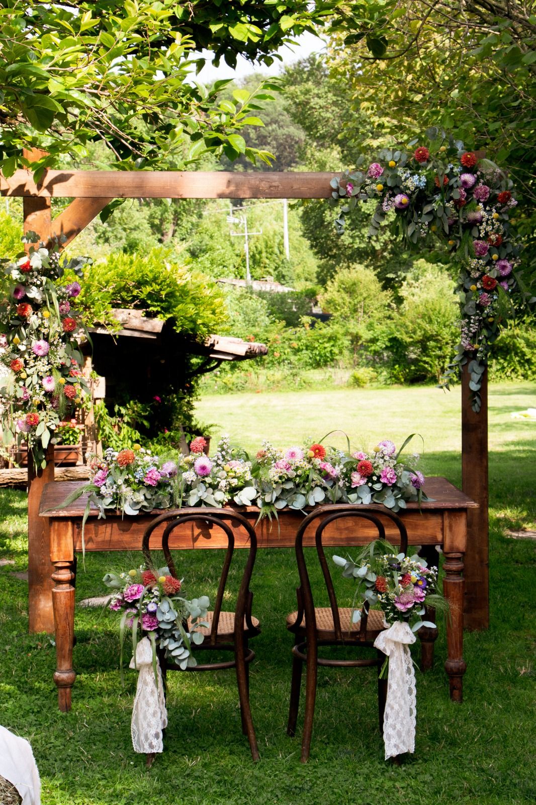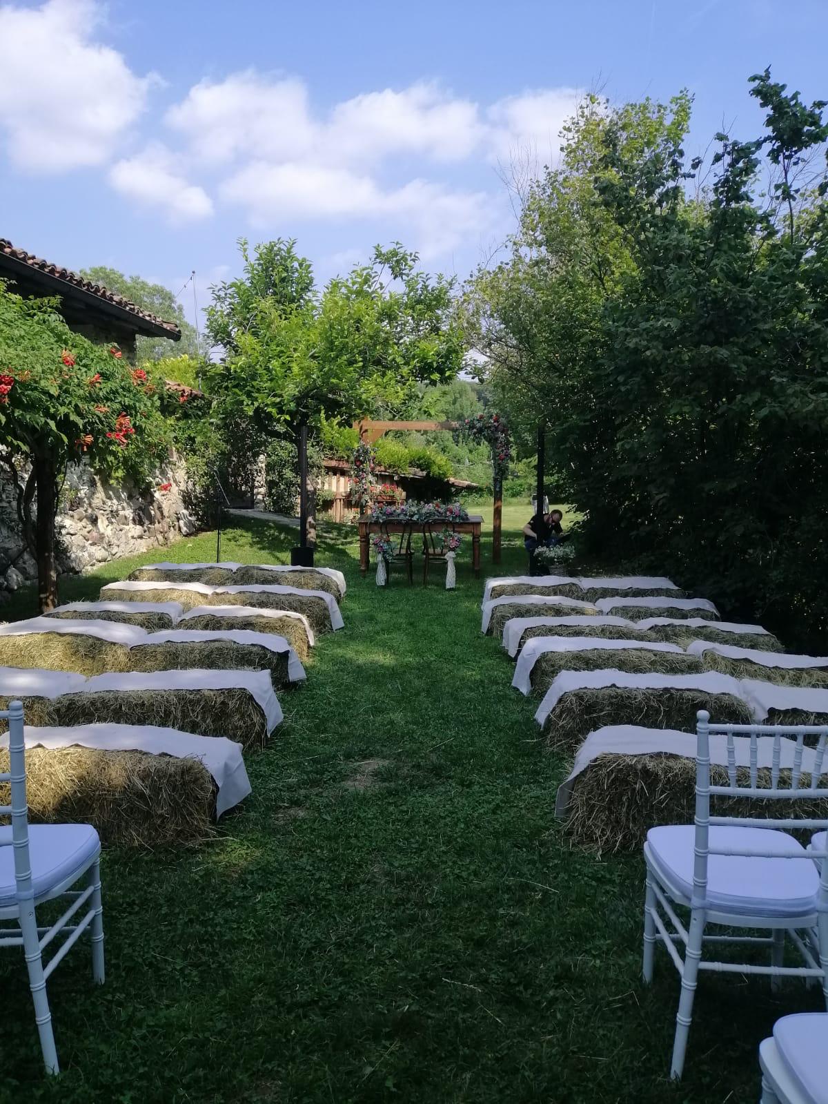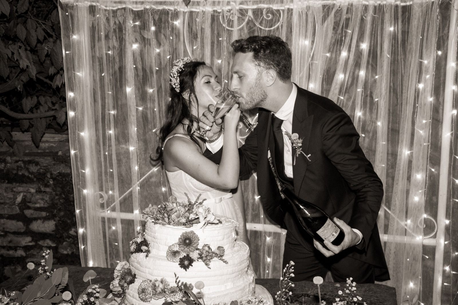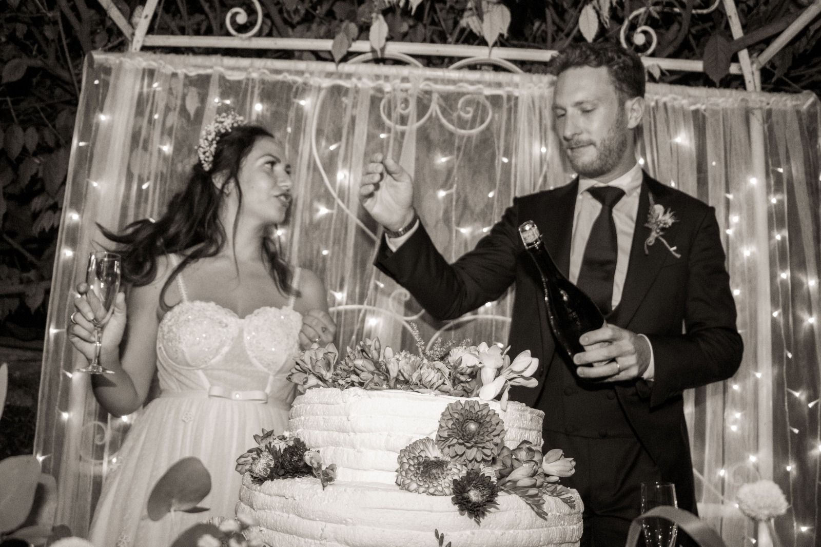 Per loro abbiamo studiato un menù con un aperitivo post cerimonia ricco, un entreè a tavola con burrata e gambero, un primo piatto ed il secondo. Il buffet di dolci e la torta sono stati serviti nella splendida corte della location. Tavoli antichi, credenze, lucine, candele, pampas e fiori colorati per incorniciare i nostri fingers.
