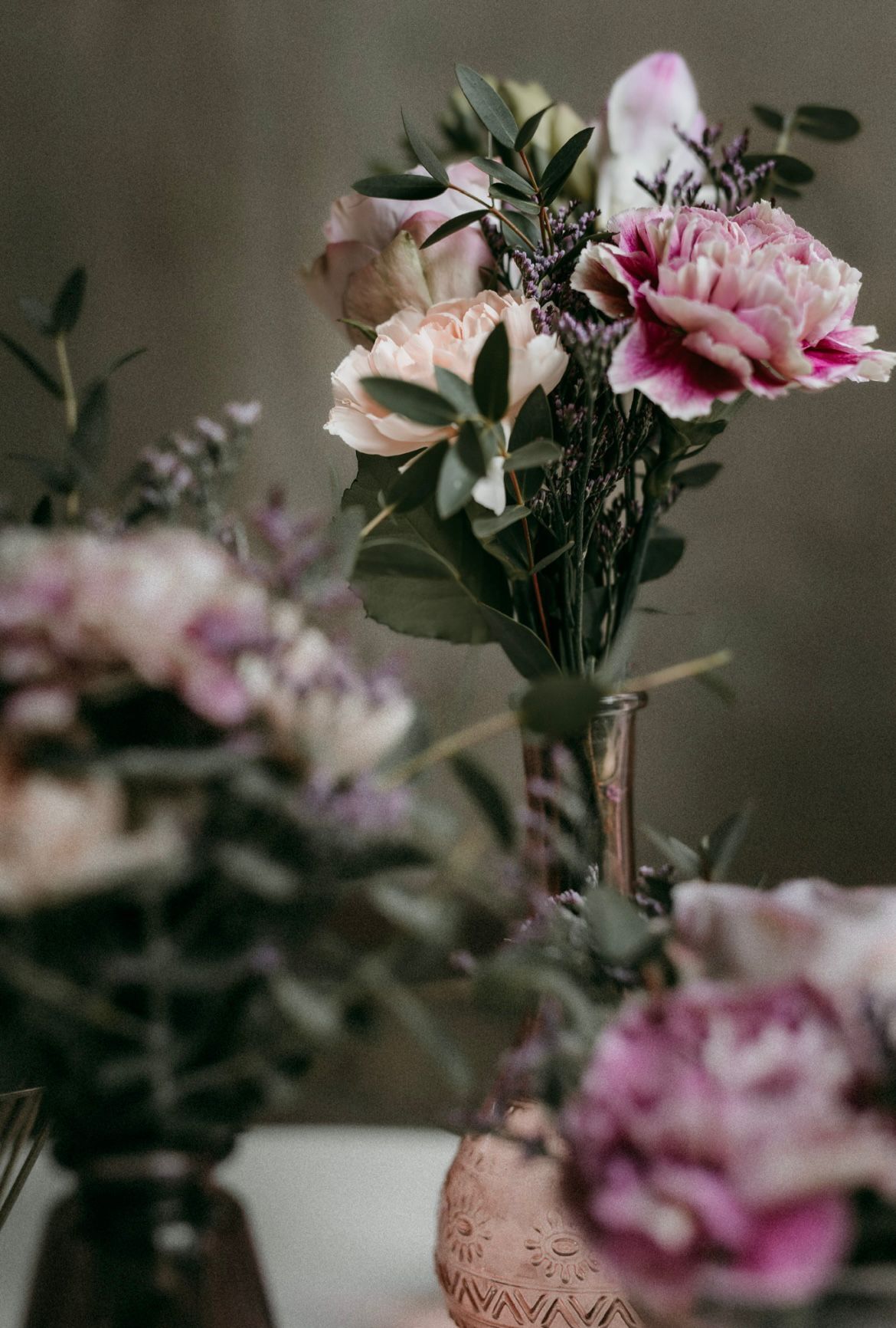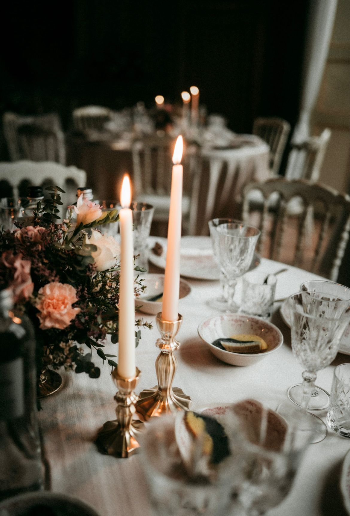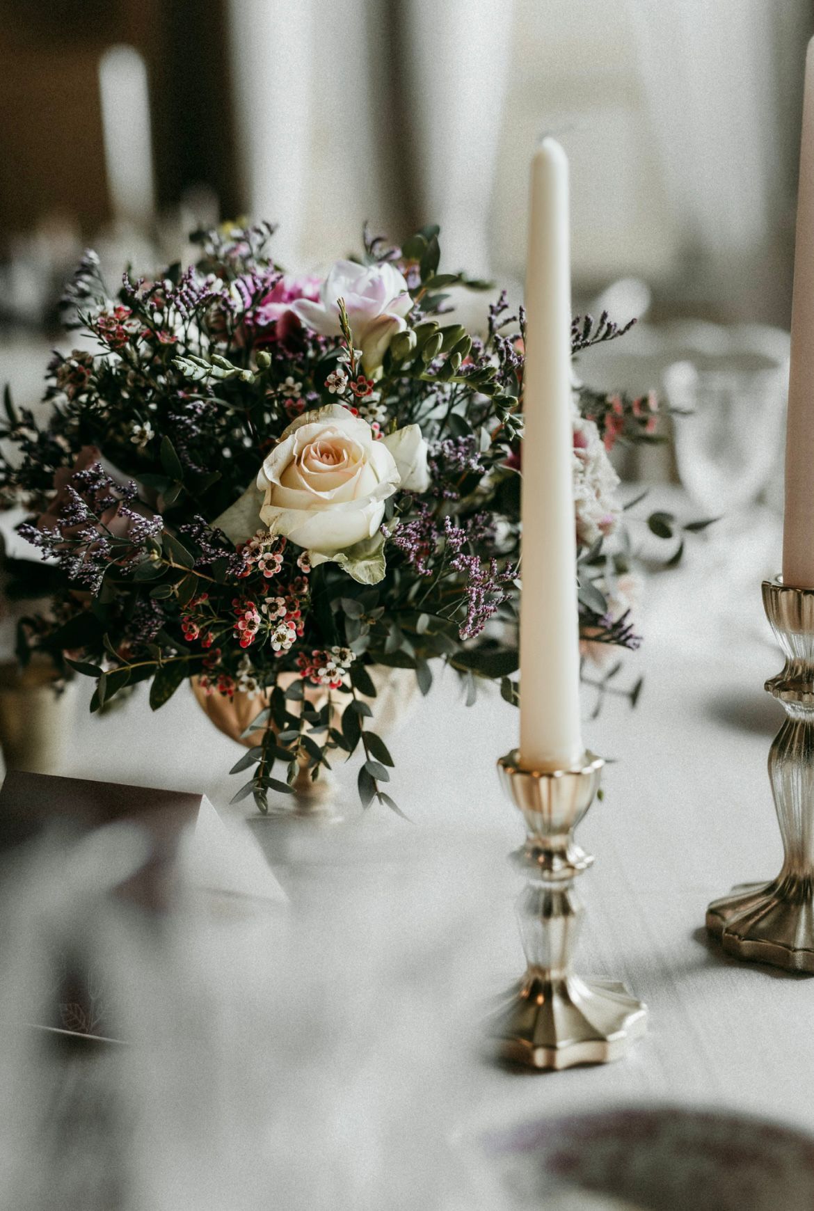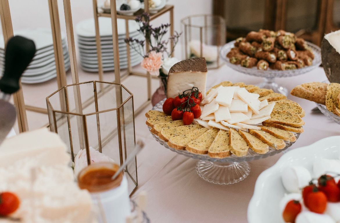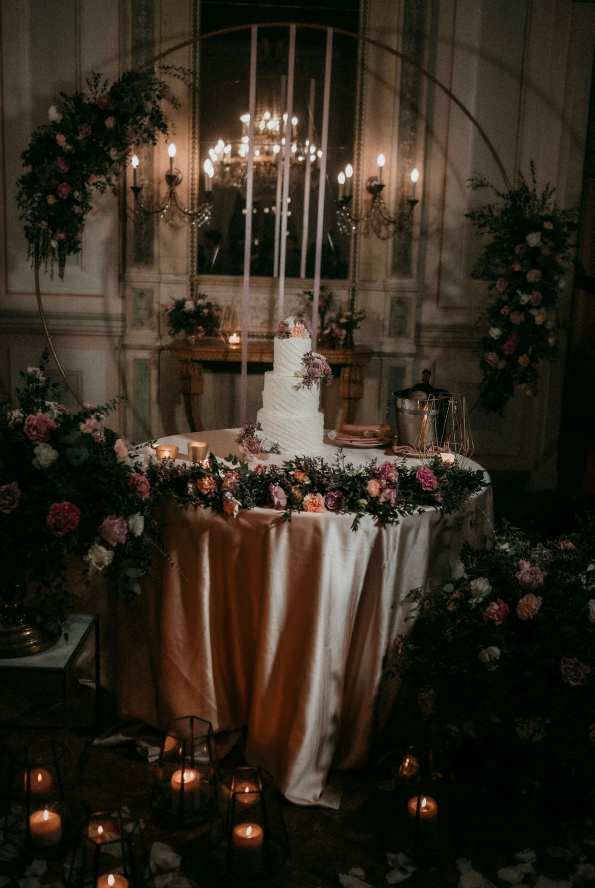 Il colori cipria e burgundy scelti dalla sposa sono stati utilizzati per gli allestimenti del buffet, stesso richiamo per la mise en place che richiamava le tinte e manteneva lo stile della location.