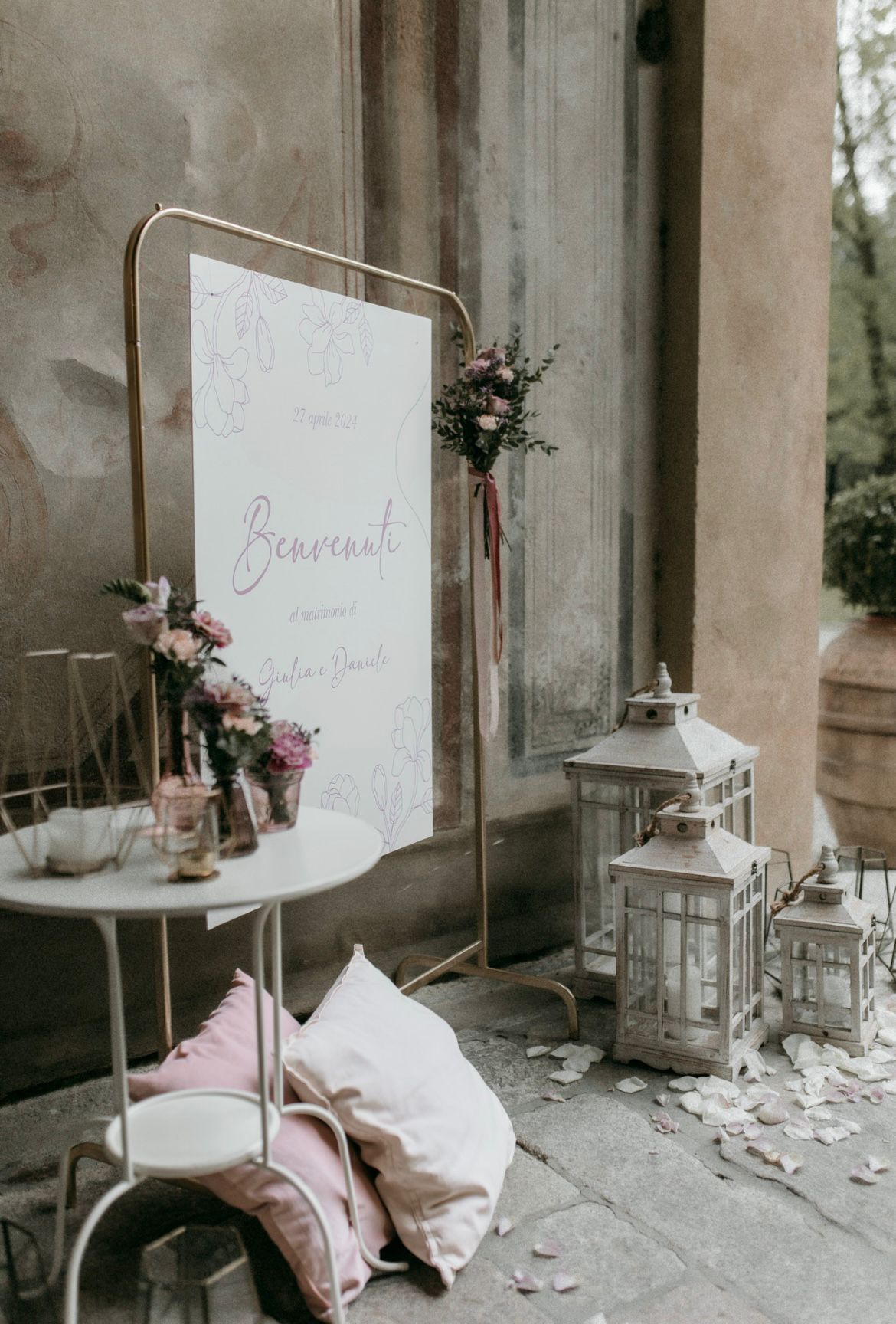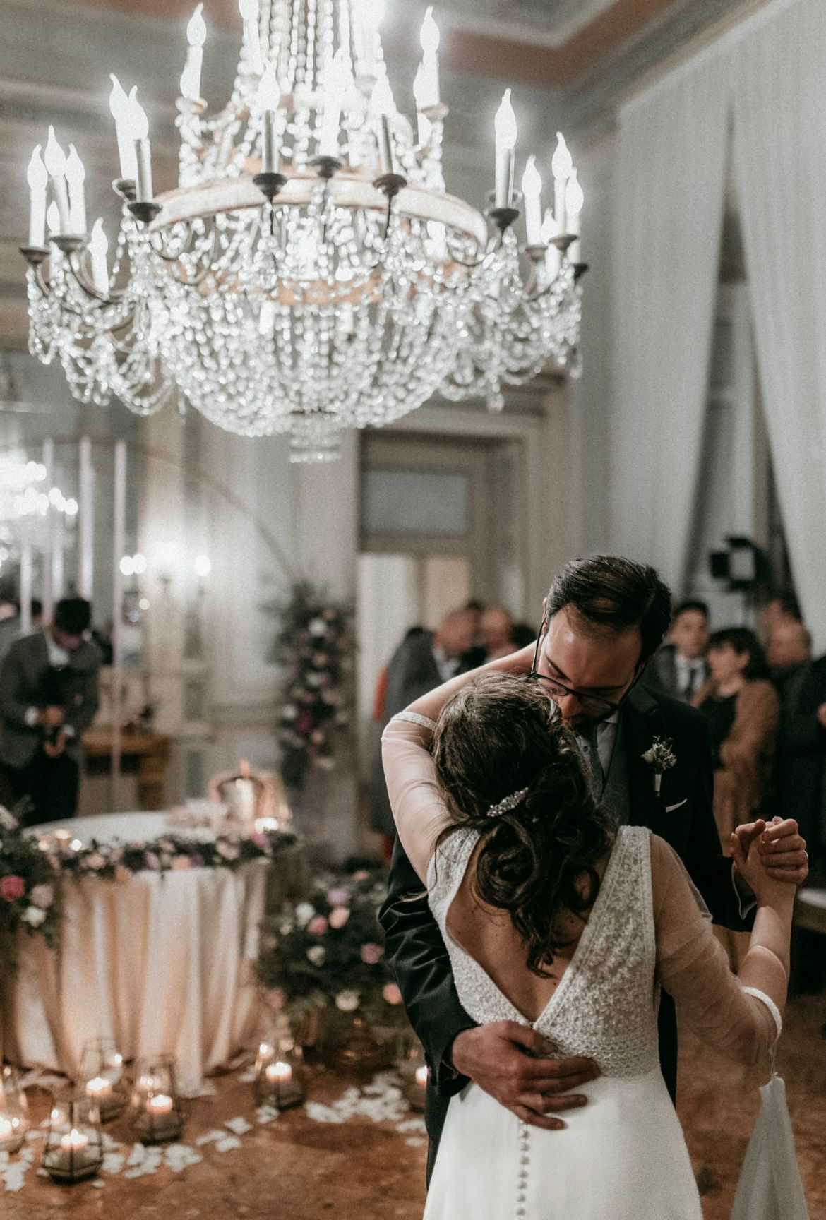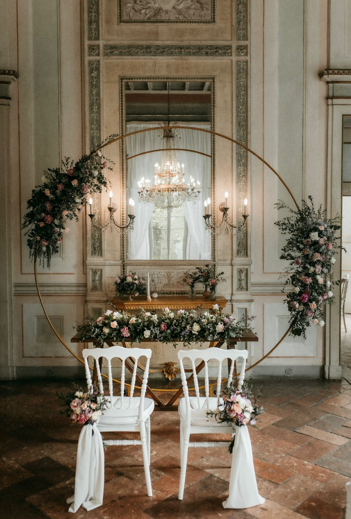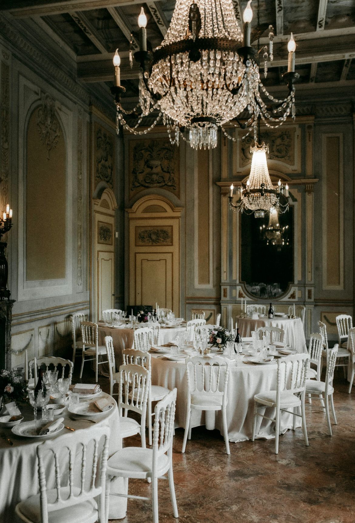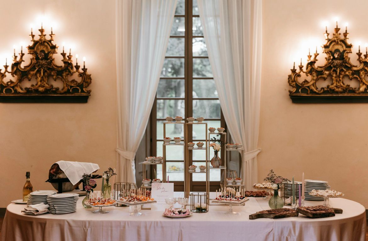 Matrimonio elegante e romantico in Villa Gaia Gandini, a fine aprile nelle sale interne della location abbiamo allestito cerimonia, buffet e cena.