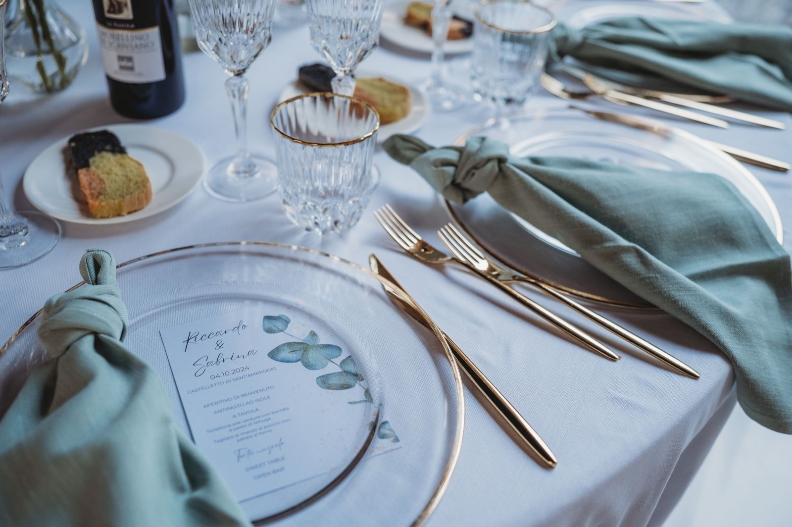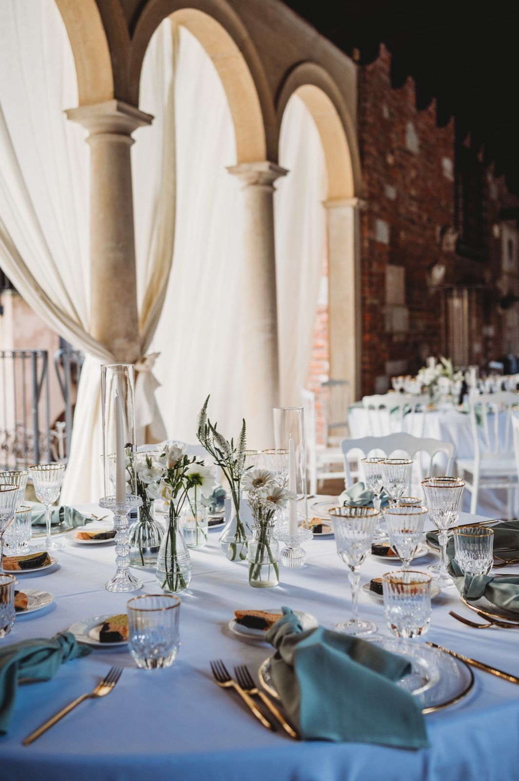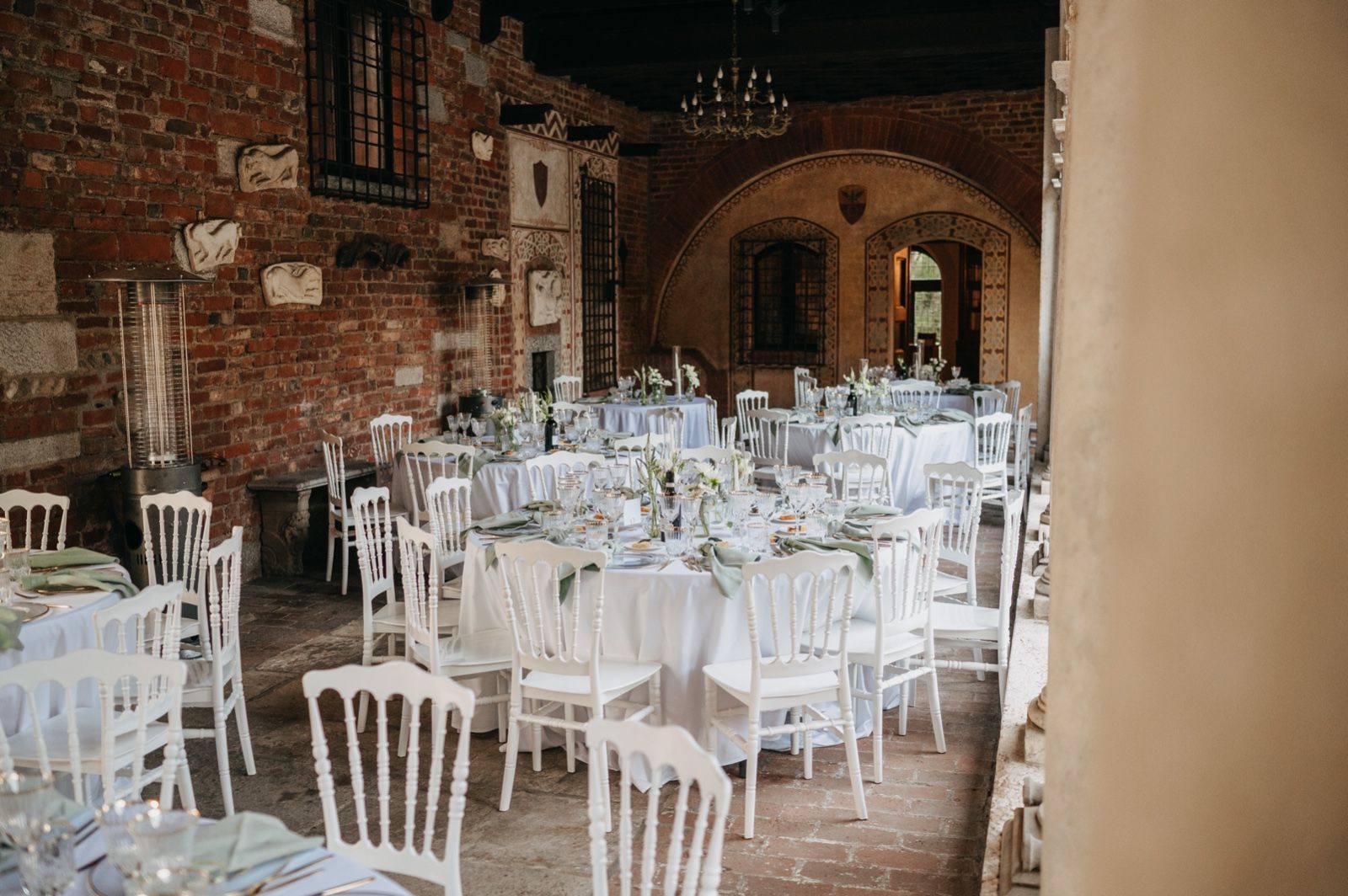 Sabrina e Riccardo hanno scelto una cerimonia nel verde al Castello di Corbetta, ai primi di ottobre, allestimenti molto curati tenendo conto del verde e bianco come ama Sabrina