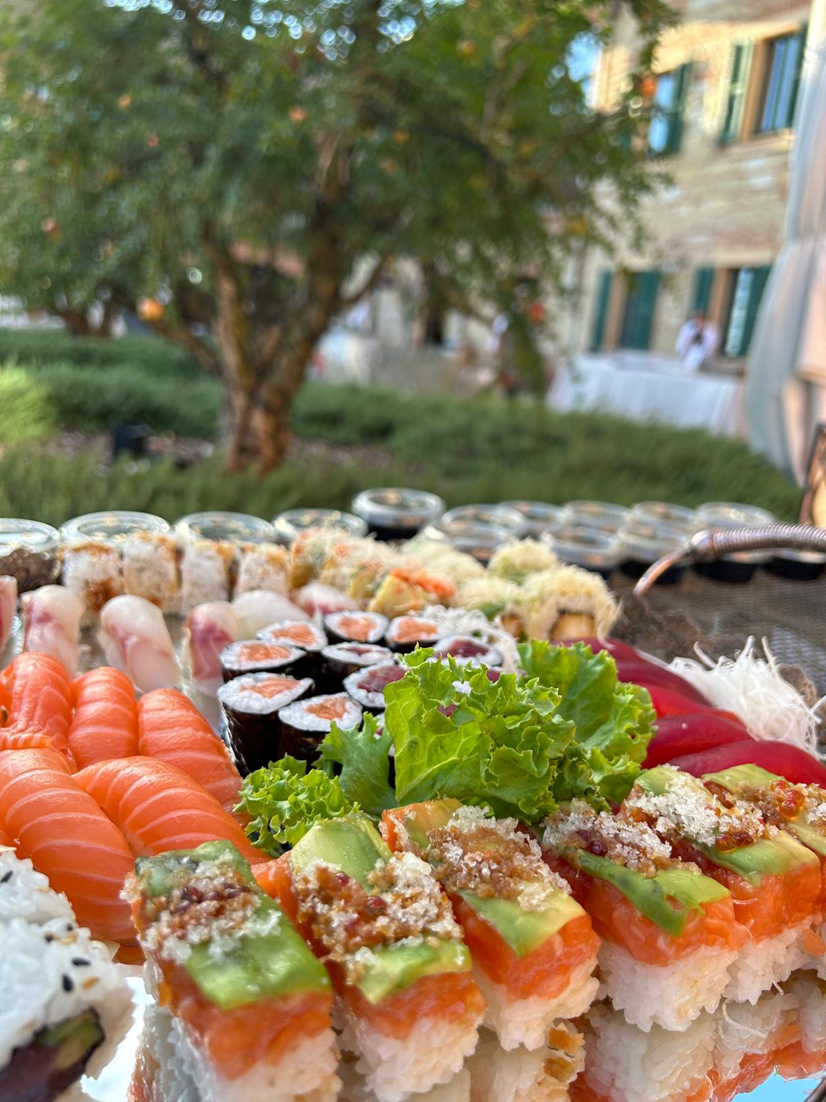 Abbiamo pensato alle isole di salumi , pesce e casaro con show cooking nella corte, con aggiunta di angolo Sushi by Wen per  dare un valore aggiunto .